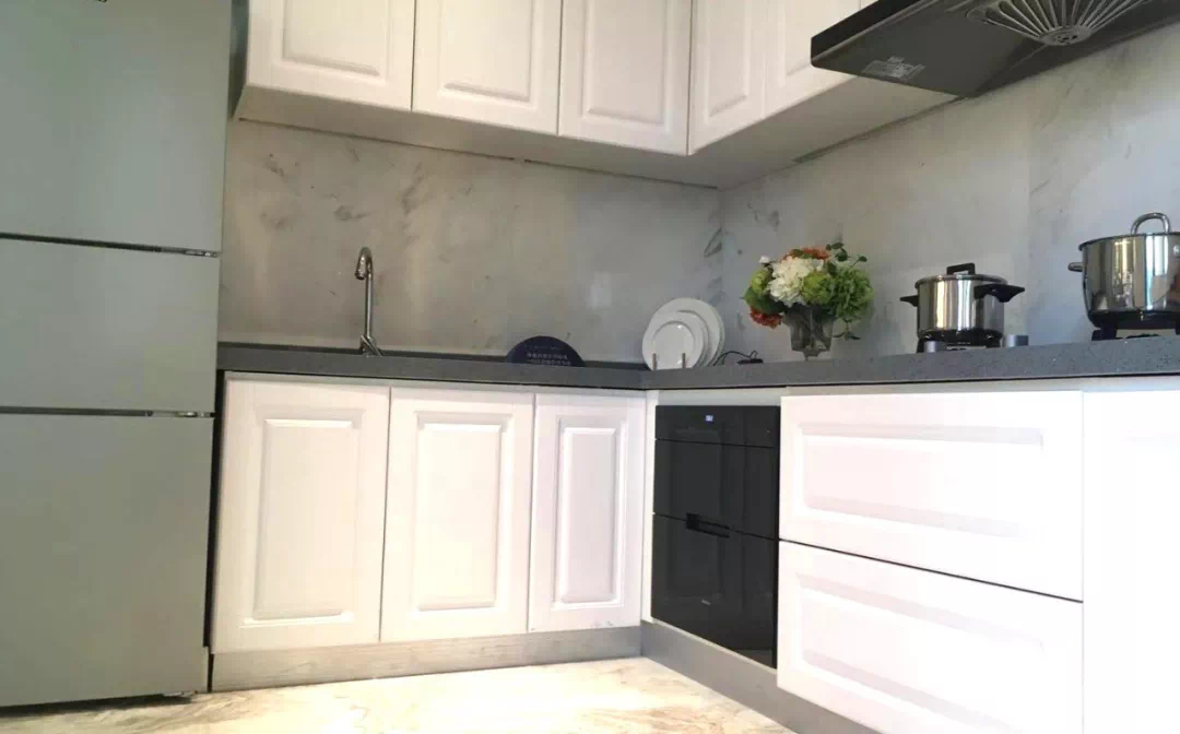 L型厨房带生活阳台与客餐厅连通,采光基本没问题。