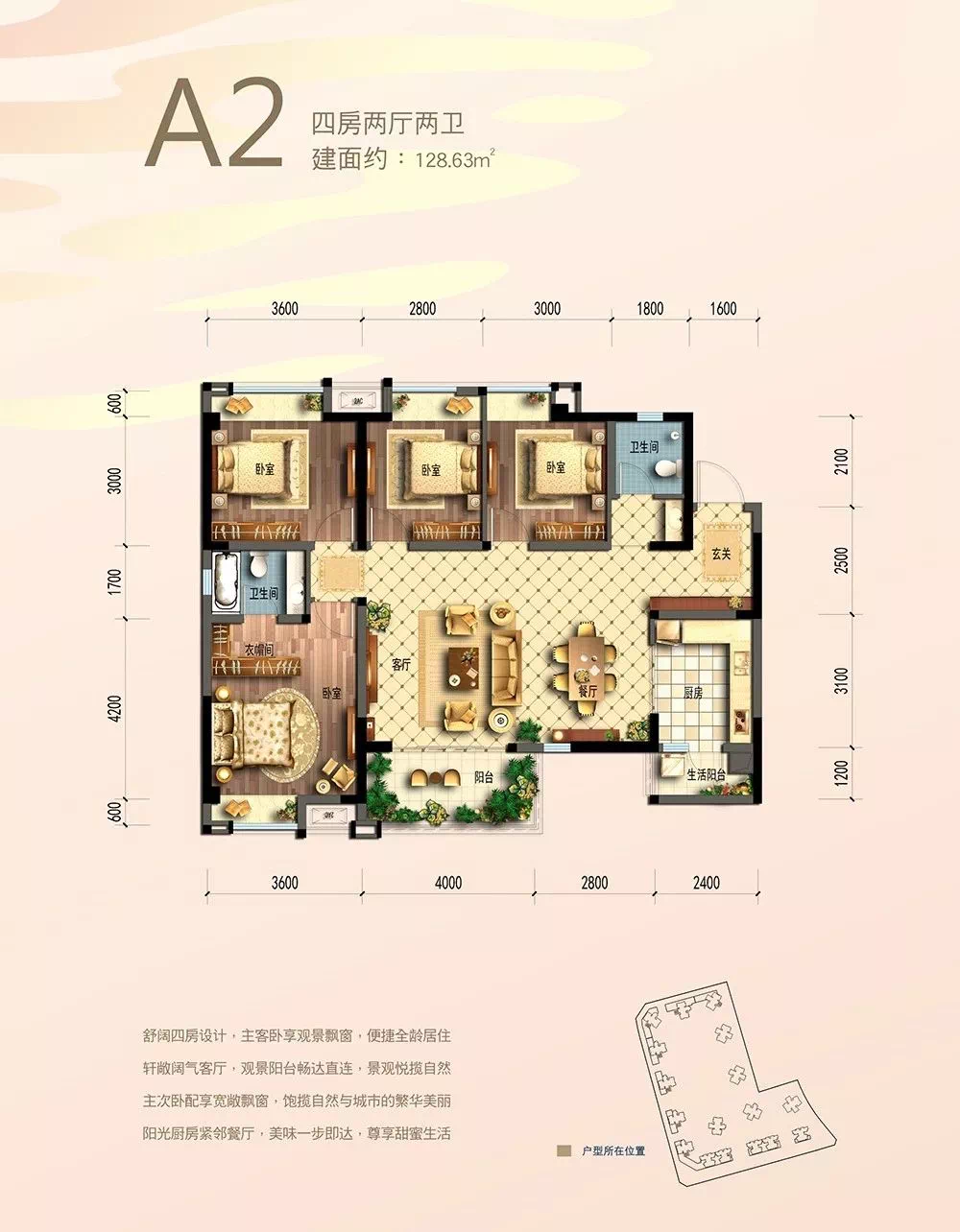 A2户型 128.63㎡4室2厅2卫