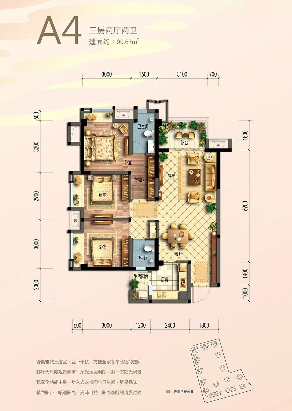A4户型 99.67㎡3室2厅2卫