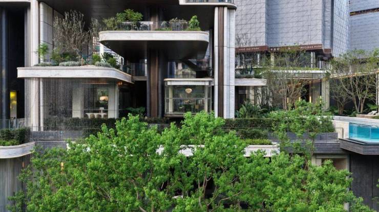 自然与奢华的和谐共鸣,在"四维奢宅"的创新架构中得到完美诠释,实现了建筑与景观的深度对话,将成都"公园城市"的发展理念演绎得淋漓尽致。"四维"设计中的每个维度都承载着华宸府独特的空间叙事,垂直生态体系、外向式浮岛、社交空间、连廊水景......让居者既能享受高颜值的奢适居所,又能拥抱自然生态的宁静氛围。
