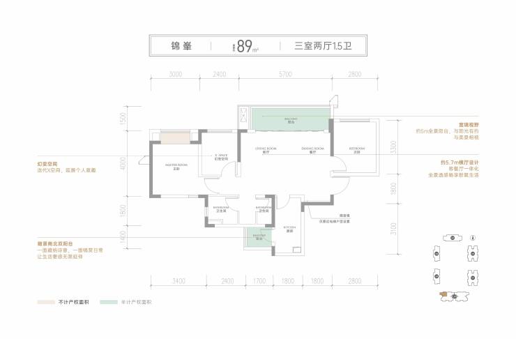 南北双阳台丨5米全景阳台丨可变X空间丨餐客厅一体化设计