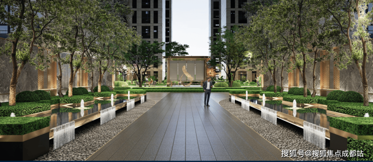 百米中轴长廊,拓宽阔尺视野,延展南北景观空间。核心景观点以镂空金属屏风与现代艺术廊架为主体,高定精雕业主私属的中央会客厅,构建舒适放松的社交场景。
