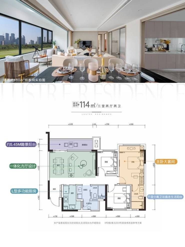 户型:110㎡进阶舒雅三房,套三双卫,经典坚厅格局,更有约5.8m阔景阳台,享270°全景采光;超22㎡主卧套房,独立卫浴、飘窗、衣帽空间,升维空间精致感。