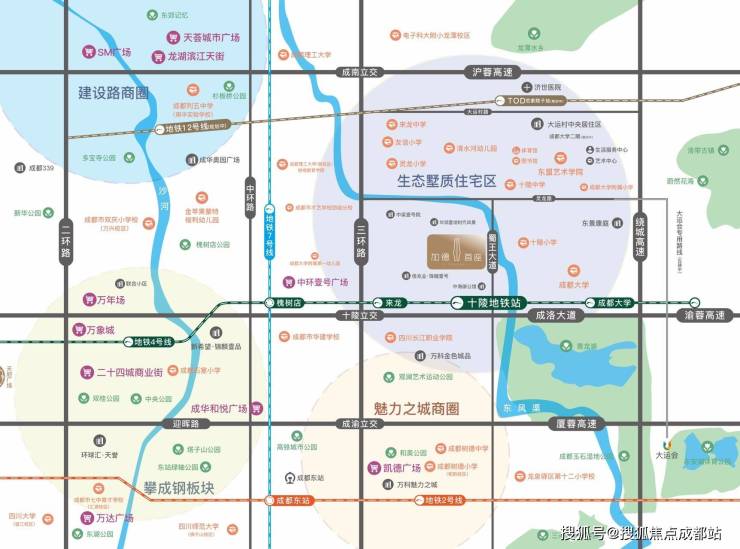 项目雄踞"中优"与"东进"战略交汇处,坐享城市发展双重红利。东三环黄金区位,毗邻大运会核心区,距地铁4号线十陵站仅200米,2.5公里直达成都东站。沪蓉、渝蓉、夏蓉及绕城高速构成立体交通网,实现全城高效通勤。