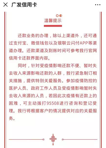 广发银行紧急制订相关措施,提供特别关爱服务。但是具体内容并未公布。
