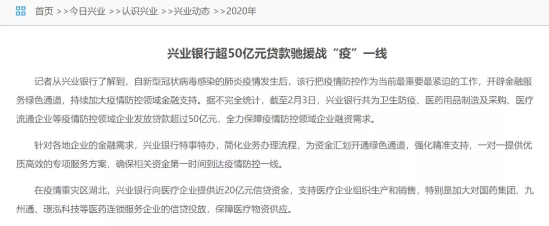 兴业银行官网上发布了关于企业的支持措施,但并未提及房贷逾期等情况。