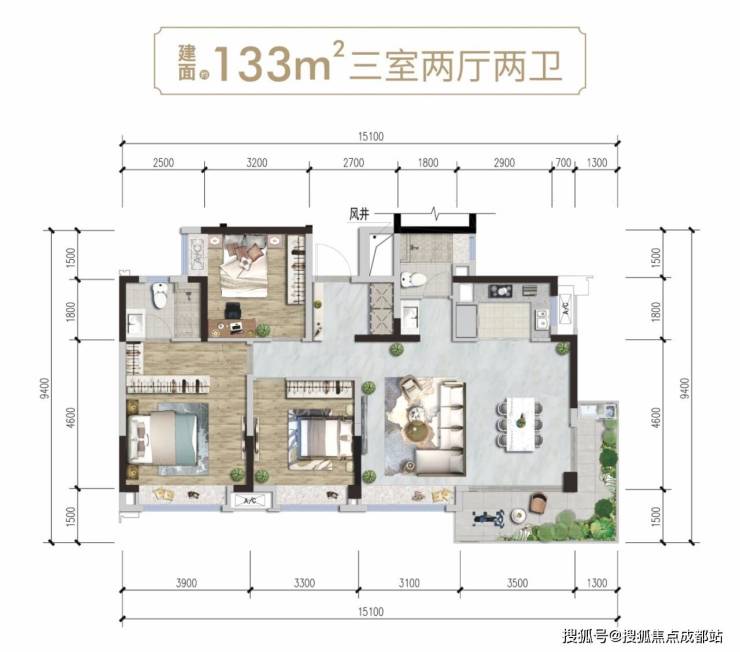 270度转角花园阳台;动静合理分区; 静谧中庭视野