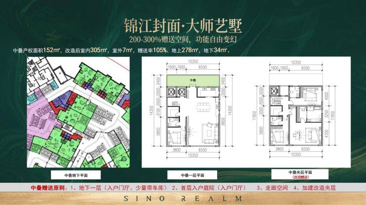 地上360-470㎡,地下127-211㎡。花园面积30-120㎡;
