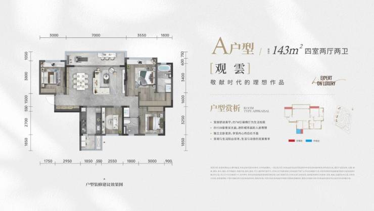 锦江平层143㎡A户型王者四房(四室两厅两卫(横厅)