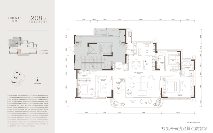 项目占地34.38亩,规划7栋大平层,提供208㎡、249㎡、318㎡三种户型选择: