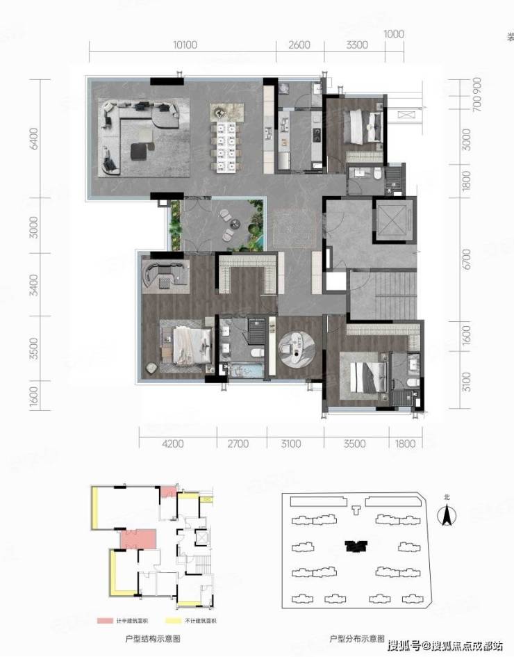 是项目的楼王户型,拥有360°社区/城市景观环抱,中庭楼王落位,景观视野绝佳。户型设计更加注重空间的奢华感和舒适度,可满足高端改善客户的需求。