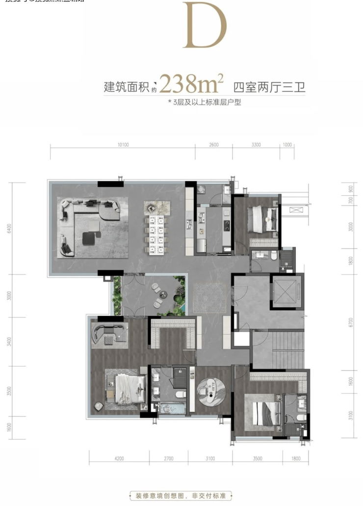 238㎡四房两厅三卫(楼王户型)