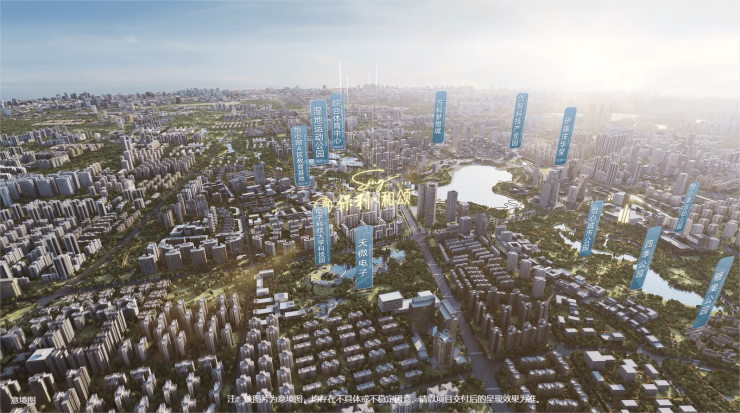 怡心湖作为城南唯一枢纽湖区衔接东南西北各个组团,吸附周边区域,共同形成“大怡心湖板块”