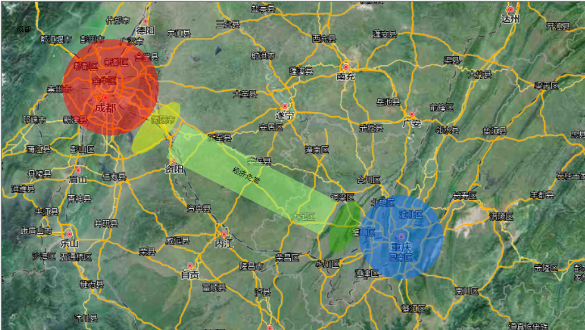 成都向东有东部新区,重庆向西有高新区。去年重庆就在西部划了高新区,现在又有了成都的东部新区,两者都位于成渝经济轴心线上,遥相呼应,也将引领成都向东,重庆向西,以点连轴推动成渝相向发展。