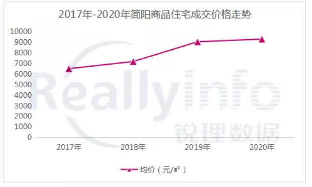 2016年简阳平均成交楼面地价为803元/㎡,2019年攀升至3475元/㎡,升幅为332.8%。
