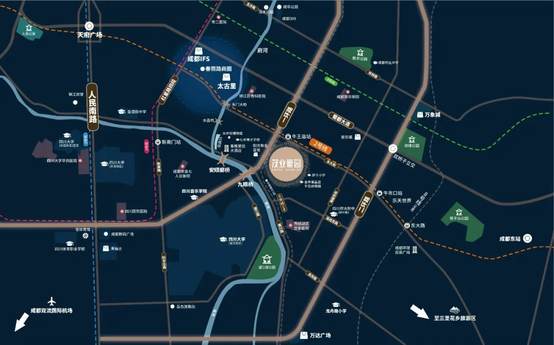 茂业豪园位于九眼桥核心区域,项目坐拥区域核心资源及立体化的交通,是茂业集团在成都的排名前列高端住宅产品。