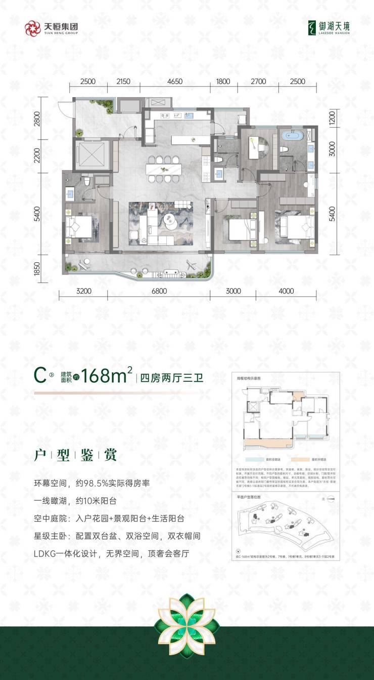 由北京天恒置业倾力打造的「天恒御湖天境」,占地61.7亩,容积率仅1.5,绿化率达30%,打造低密宜居社区。项目规划8栋住宅共220户,配备4栋商业综合体(含商业街区及星级酒店)。住宅均为11层小高层,采用2梯2户设计,公摊19%并赠送12㎡入户空间,实际得房率高达98%。