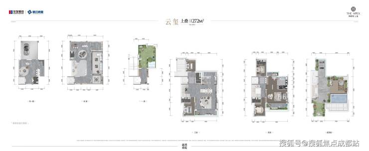 项目规划涵盖6栋190-330㎡庭院洋房及3栋260-269㎡前湾叠院。叠拼产品通过2.4-3米的高差处理,有效提升居住私密性。