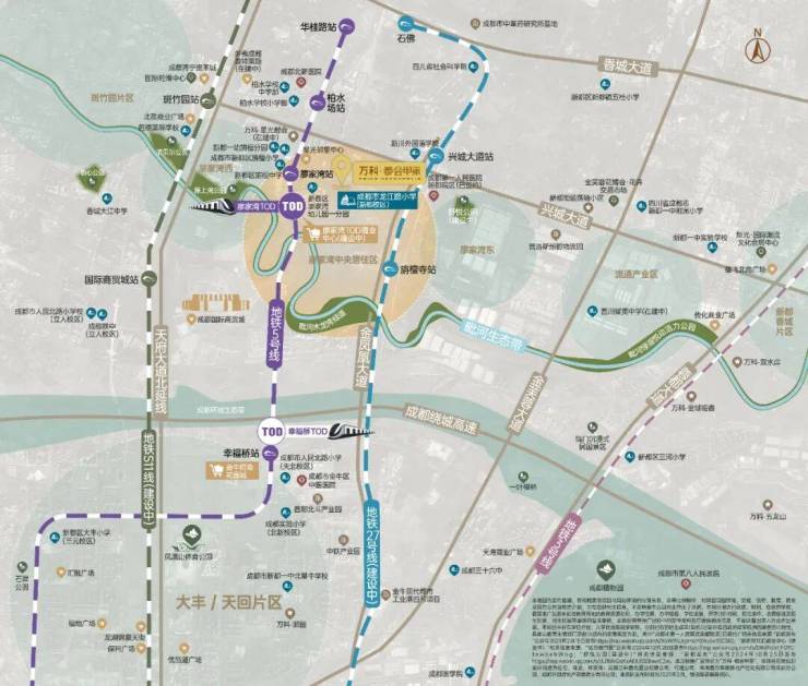 立体交通网络:项目西侧约500米即达地铁5号线廖家湾站,这条贯通成都南北的交通动脉可快速直达金融城、大源、锦城湖等城南核心商务区。更值得期待的是,区域内还规划有27号线及市域S11线(建设中),未来将形成多维立体交通体系。(直线距离数据基于百度地图测距,实际距离以实地出行为准)