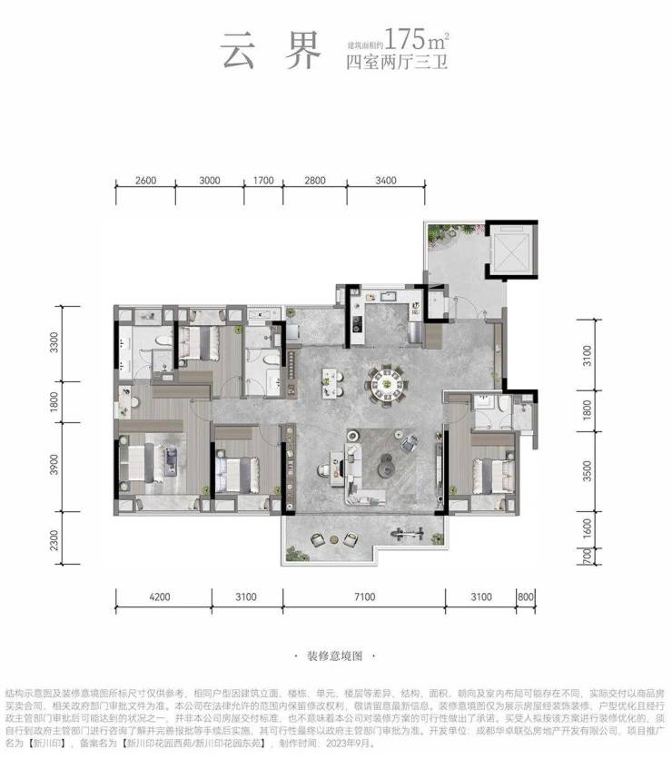 建面约175㎡户型:家庭礼序感与松弛感兼备