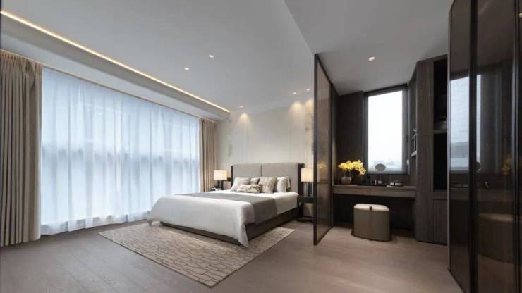 主卧套房尺度则达到约30㎡,不仅带有大尺度步入式衣帽间,并且主卫开门不对床,甚至可容纳双台盆,让早高峰更从容……