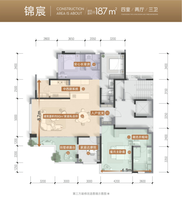 主力户型:建面约187㎡大平层
