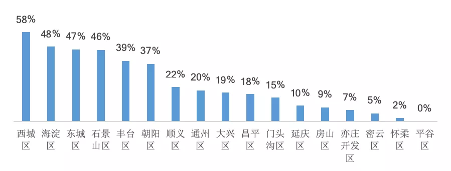 北京各城区内部老旧房源占比|来源:贝壳研究院