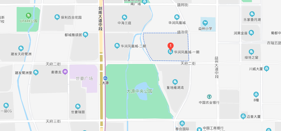 华润凤凰城一期位于天府二街与剑南大道中段交汇处附近,处于大源板块,距离地铁5号线大源站约600米。