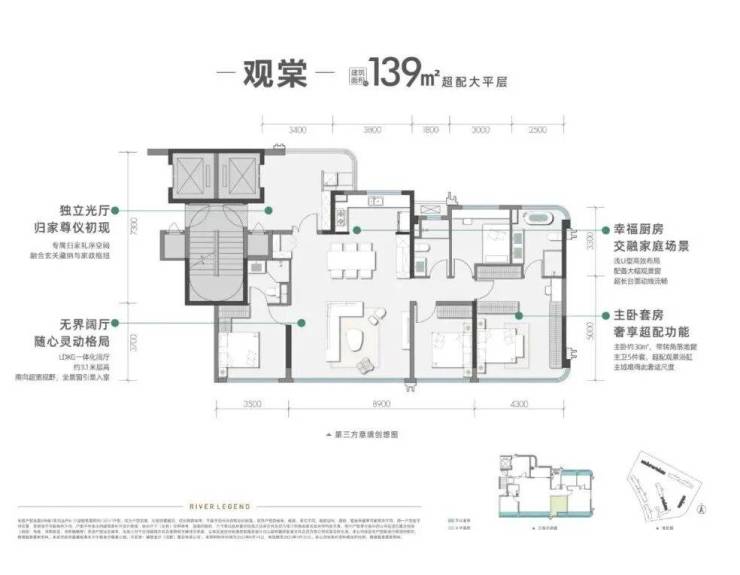 作为青羊区最后一块毗邻清水河岸的住宅项目,中旅金沙馥棠与河岸直线距离仅约50米。社区内过半楼栋均规划有推窗见河的观景户型,通过7层稀缺瞰河洋房与小高层的错落布局,最大化保障每栋建筑的景观视野。