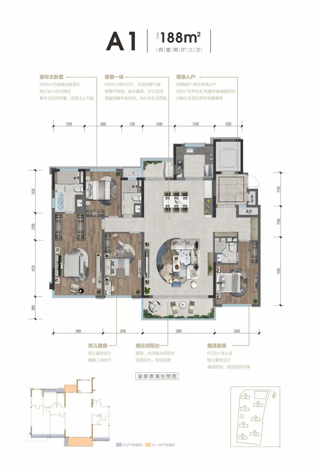 产品面积:建面约188㎡(不包括少量的顶跃和底跃)