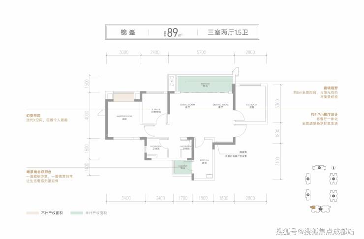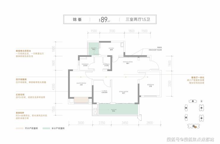 锦峯--建面约89㎡(三室两厅1.5卫)