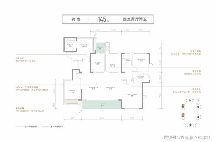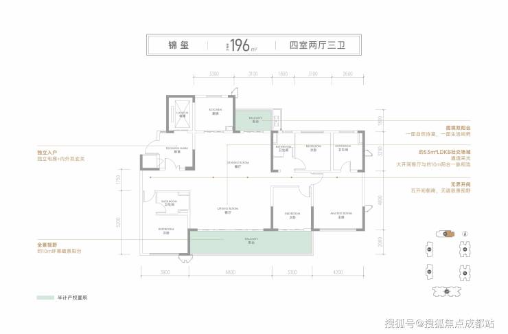 大围合布局,百米楼间距,享约5400㎡景观中庭