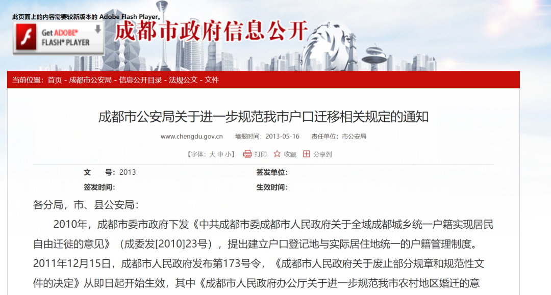 来源于成都市政府信息公开——成都市公安局关于进一步规范我市户口迁移相关规定的通知