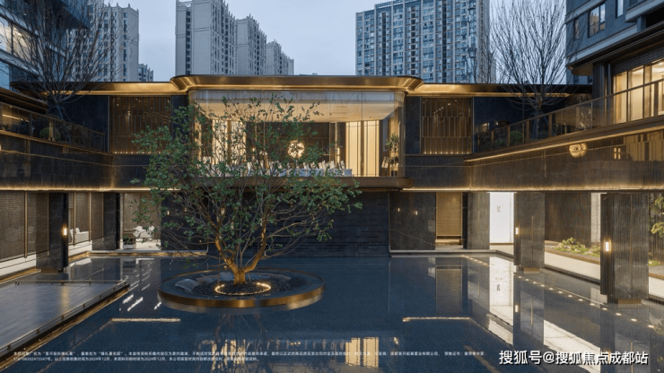 创新设计:55米超尺度酒店式门厅,搭配606片菱形星空顶与奢石景观;下沉式庭院会所,以枯山水造景,营造“城市山林”隐逸意境。