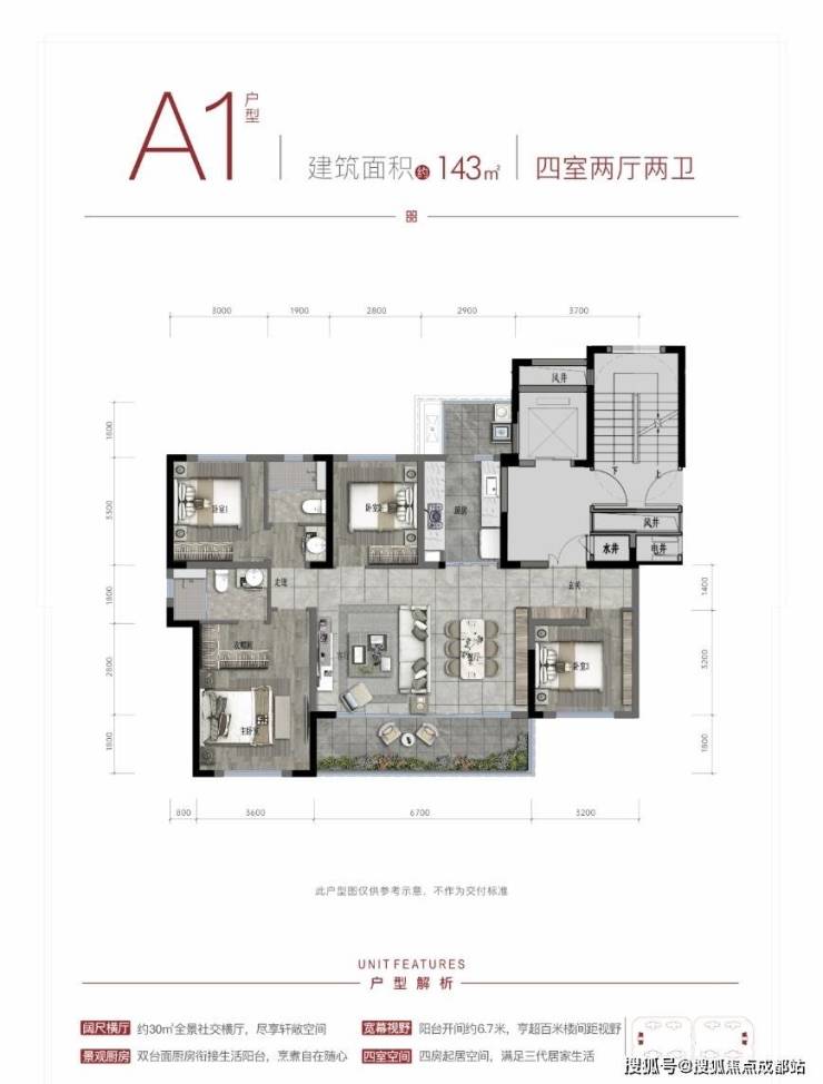 在售户型:套三/双卫:129㎡ ;套四/双卫:143㎡