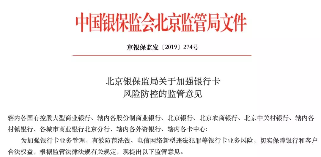 据每日经济新闻,在今年8月底,北京银保监局发布《关于加强银行卡风险防控的监管意见》,在13条监管措施中有5条直指信用卡业务,其中一条就提到“加强信用卡资金流向监控”: