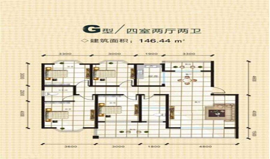 4室2厅2卫-G户型 四室两厅两卫 146.44㎡