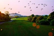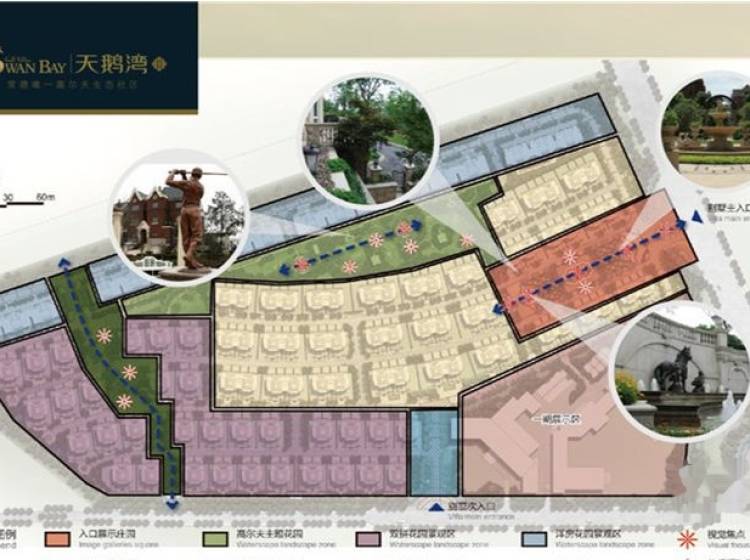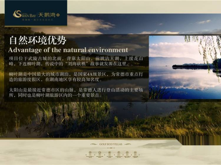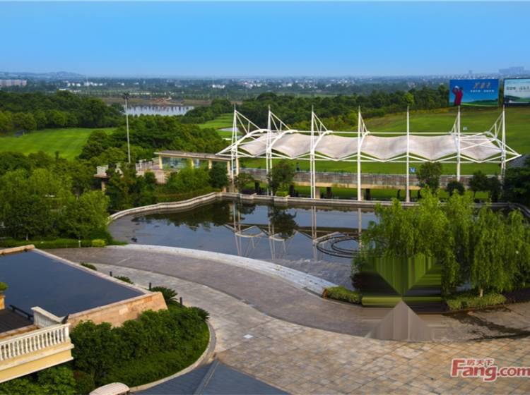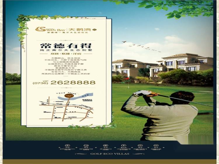 标志建筑 共和酒店、桃花源高尔夫会所、汽车总站、火车站 公园绿化 太阳山、柳叶湖景区, 高尔夫、 自然景观 太阳山,柳叶湖,高尔夫 就医条件 常德湘雅医院、社区医疗 就学条件 幼儿园,芷兰学校 商业环境 火车站、人人乐、大润发 银行 交通银行 建设银行 兴业银行 园区从西向东、从北往南设有五个主题绿化景观组团,有代表自然、休闲的自然绿谷;有代表绿色氧气的高尔夫花园;有代表纯粹、尊贵的主入口展示庄园;有代表大气、疏朗的次入口;有代表风情、舒适的自然欧式别墅花园,绿化率达35%。