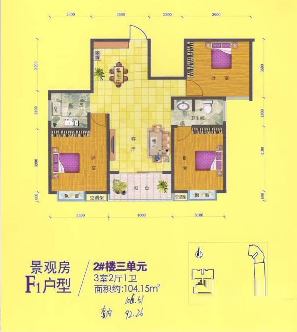 3室2厅1卫-F1户型 三室两厅一卫 104.15㎡
