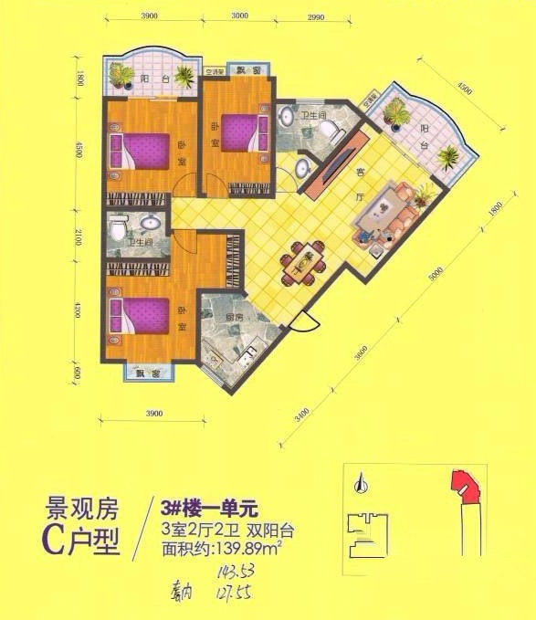 3室2厅2卫-C户型 三室两厅两卫 139.89㎡