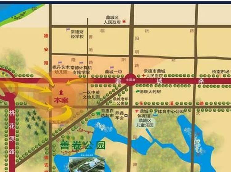 小学 花船庙小学 中学 景新中学、淮阳中学、鼎城一中 综合商场 桥南市场商圈 幼稚园 枫丹艺术幼稚园 银行 建设银行\农业银行\工商银行 邮局 鼎城区邮政营业厅 医院 鼎城区人民医院