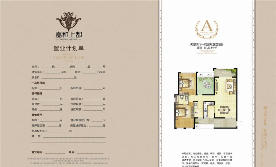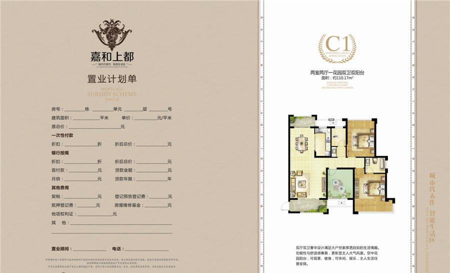 2室2厅2卫-嘉和上都户型—两室两厅两卫110.17㎡
