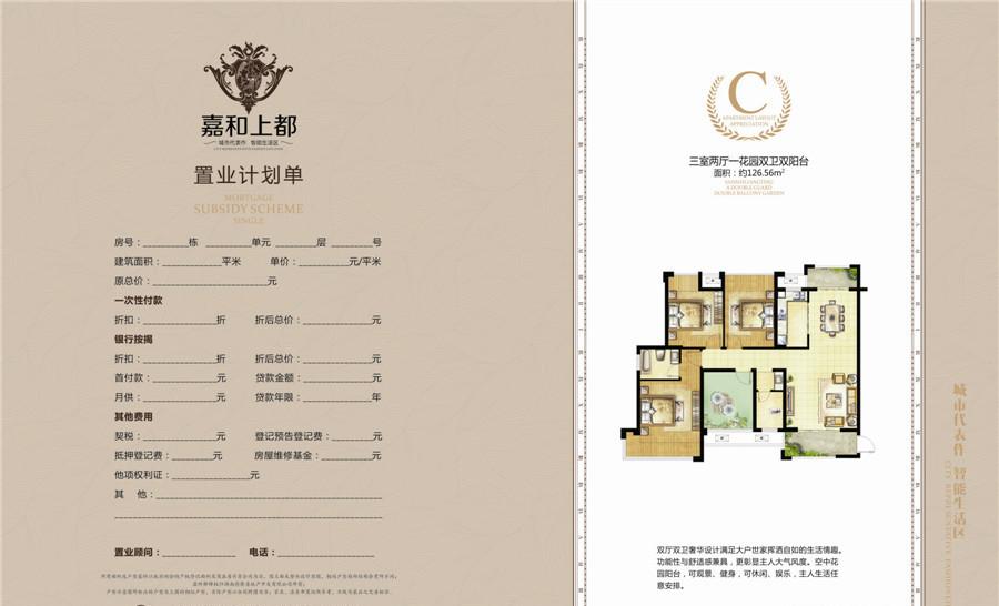3室2厅1卫-嘉和上都户型—三室两厅一卫126.56㎡