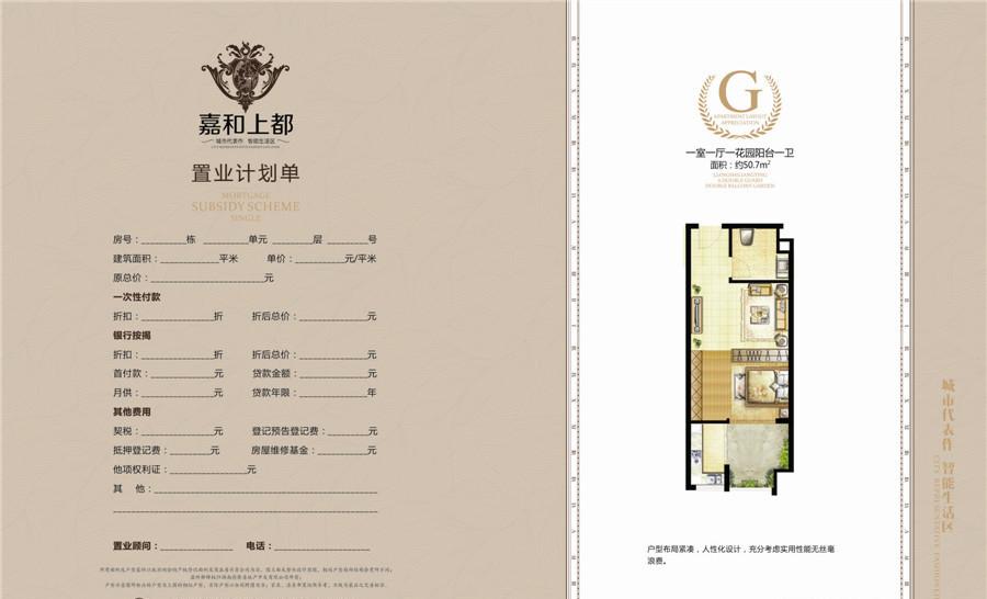 1室1厅1卫-嘉和上都户型—一室一厅一卫50.70㎡