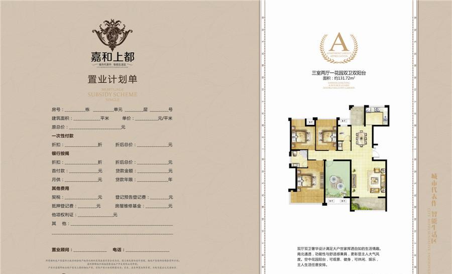 3室2厅2卫-嘉和上都户型—三室两厅两卫131.72㎡
