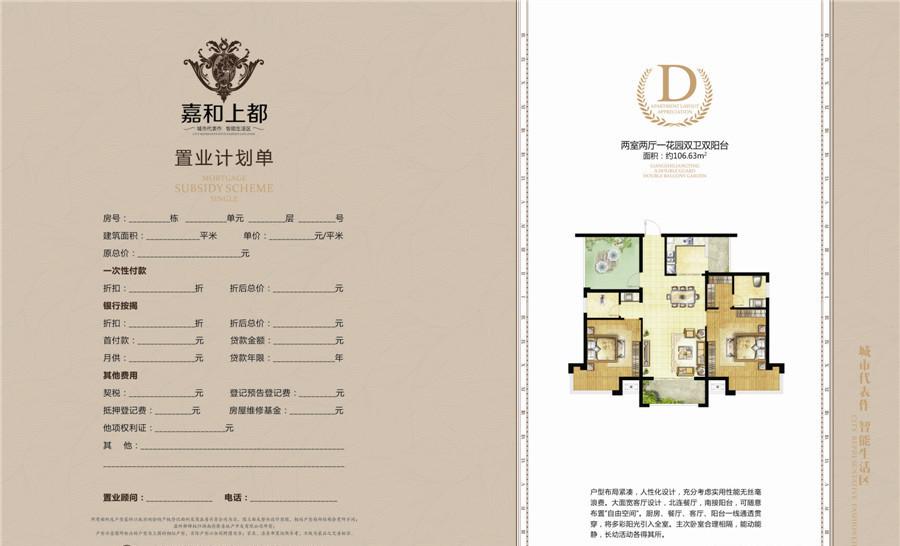 2室2厅2卫-嘉和上都户型—两室两厅两卫106.63㎡
