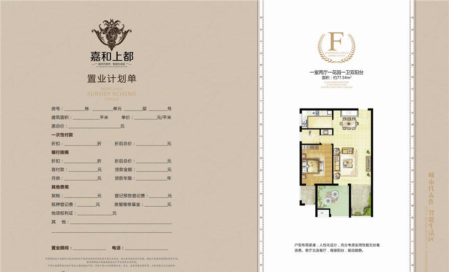 1室2厅1卫-嘉和上都户型—一室两厅一卫77.54㎡