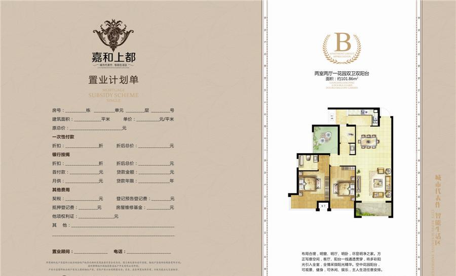 2室2厅1卫-嘉和上都户型—两室两厅一卫101.86㎡