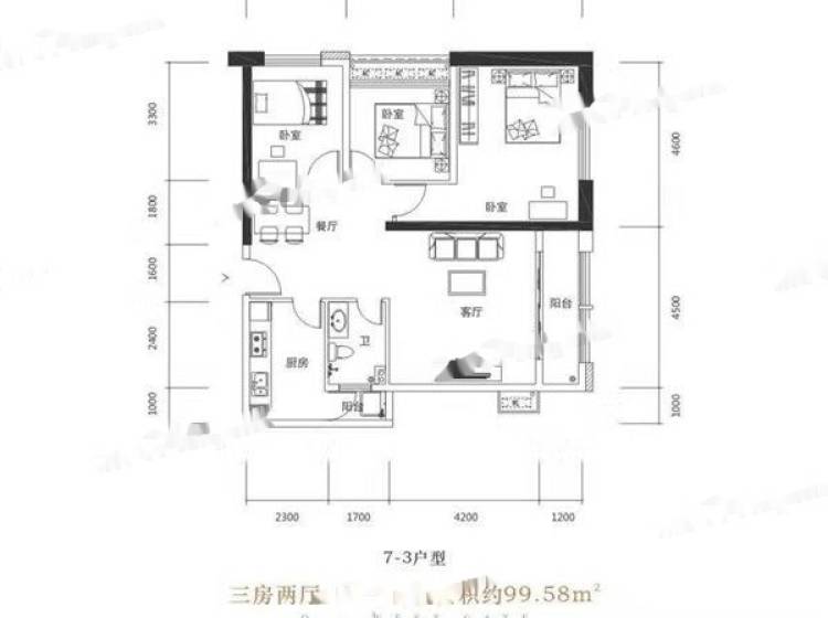 2室2厅1卫-老西门两室两厅一卫82.03㎡