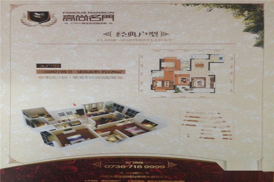 3室2厅2卫-高尚名门—A户型 三房两厅两卫 129平方米